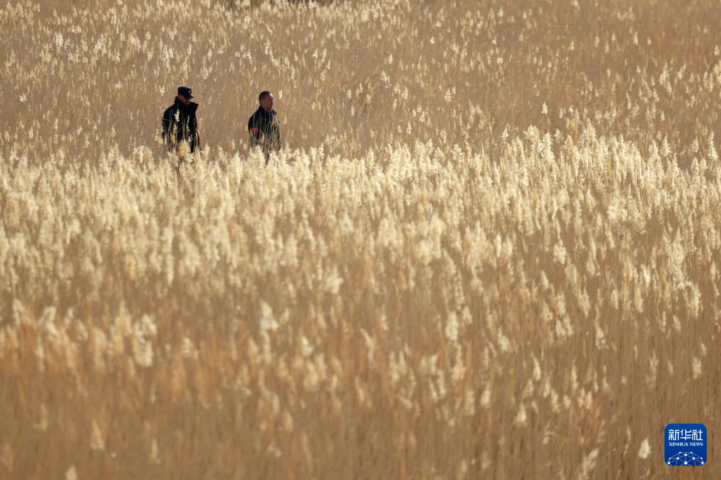 凭着多年巡护经验,吴兴东带队走进一片名为马圈湾的草海。这里芦苇茂盛,远远望去满目金黄,美不胜收。可踏入其中,滋味却并不好受。干枯的芦苇底叶硬如尖刺,扎得小腿生疼。脚下盐碱地泛着白霜,十分脆,踩上去深一脚浅一脚。
